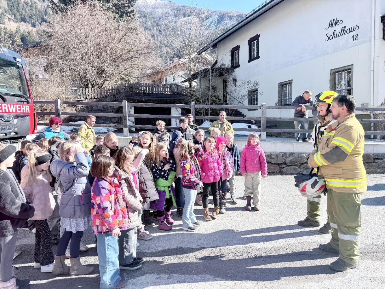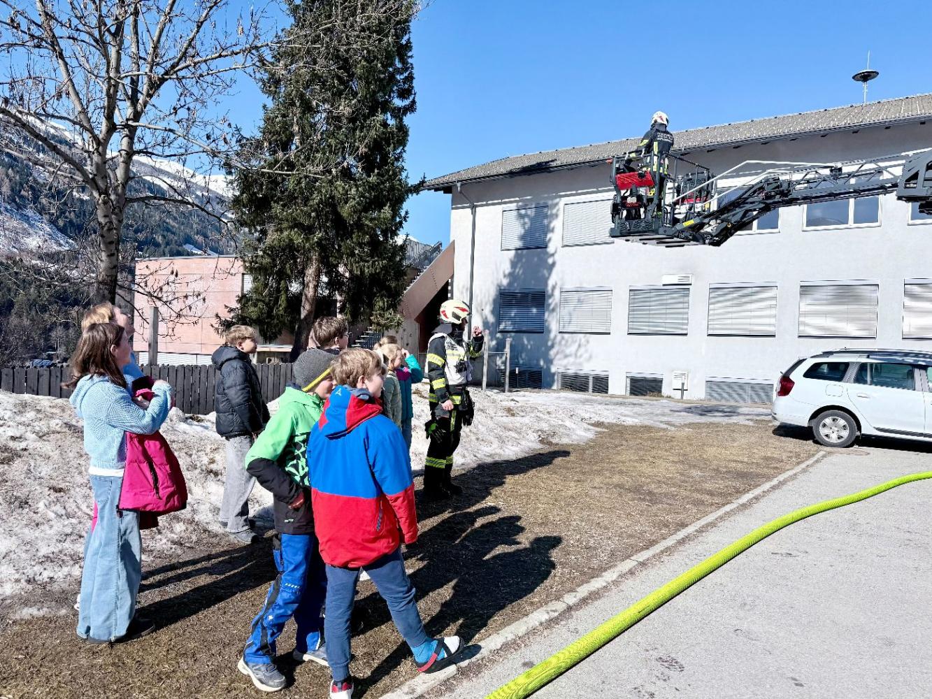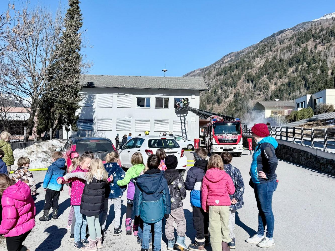 Die Feuerwehrmänner überzeugten durch ihr professionelles und umsichtiges Vorgehen. Auch unsere Schülerinnen und Schüler verhielten sich vorbildlich. Ruhig, diszipliniert und aufmerksam folgten sie den Anweisungen ihrer Lehrpersonen und der Einsatzkräfte. So konnten alle Kinder rasch und sicher zum Sammelplatz gebracht werden.